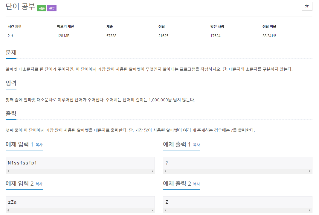 ★2020/04/18 코딩 문제 연습 (7단계 / 백준 1157) C++ 본문